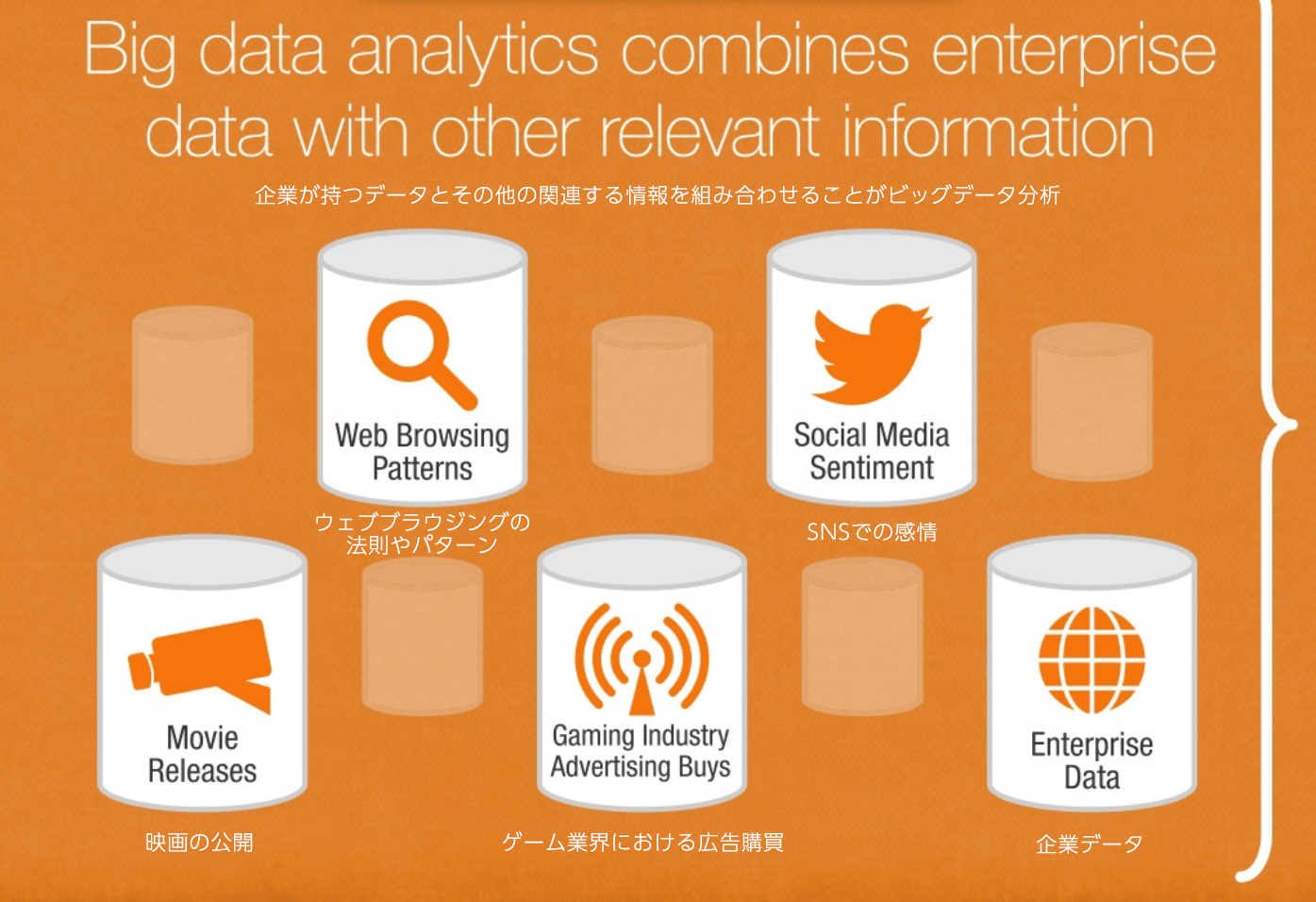 ※編集部注:上記図は市販TVゲームの売上予測トレンドをどうビッグデータ分析で割り出すか、という文脈の中で出された図です。ゲームのデータのみならず、世論や世間のトレンドも含めてビッグデータ分析している、という例です。