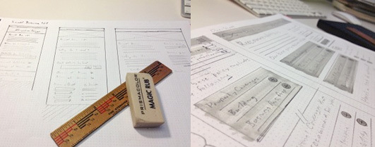 では、コードでデザインするためにどこから始めれば良いでしょうか? Jeff GothelfとStephen Hayはどちらもスケッチすることの重要性を強調しています。私もここでそれを反復しましょう。コード化することが最終目標であるにせよ、マークアップ言語に取り掛かる前にあなたのアイデアの大雑把なスケッチを描いておくことで、すでにデータとして保存してあるからという理由だけで、大したことのないアイデアに固執するのを避けることができます。