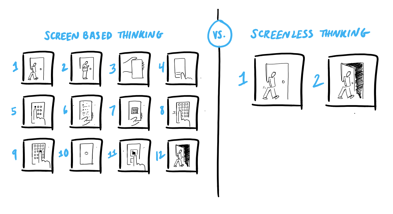 画面上で操作することを前提にしている限り、競合製品と差をつけるUXを生み出すことはできません。たとえ、パララックス・スクロールや、ヘルベチカフォントで目を引く視覚的なデザイン、ナビゲーション用のハンバーガーアイコンなど、至る所で使われている流行の手法を取り入れて、製品を今風のデザインに近づけても、それは難しいでしょう。
