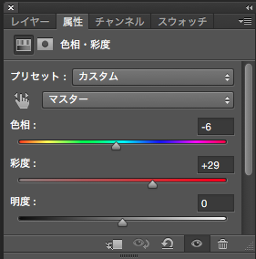 色相で、写真全体の色味を赤系に寄せたり、反対に青系統に寄せることができます。また彩度の項目を+していくと、写真の色味を濃く鮮やかに調整することが可能です。