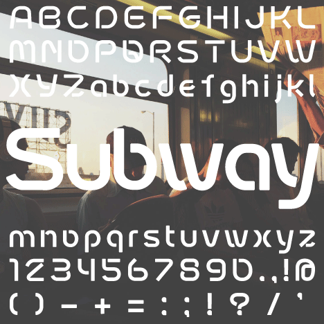 地下鉄をモチーフに作られたステンシル系フォント。カーブが丸みを帯びているので、どこか優しさや懐かしさを感じさせたいときに使えます。