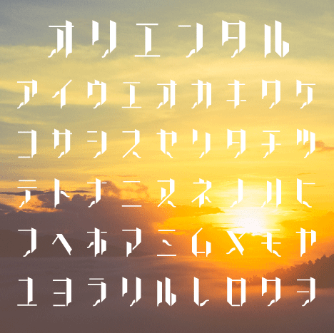 カタカナのステンシル系フォント。文字の端が少し細く曲がっているのが特徴的です。ノスタルジーな雰囲気を出したいときに使えます。