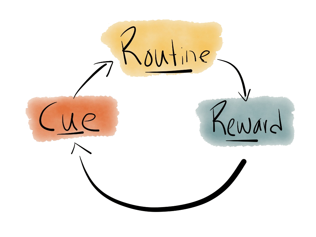 - リワード:ルーチンを完了することで得られる利益であり、動作を行う理由