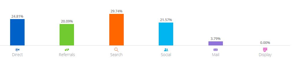 グラフを見ると、万遍なくユーザーを獲得していますが、Facebookアカウントを並行し積ん営しているので、SNS流入が高いのと、大企業なのでダイレクトが高くなっていることが分かります。