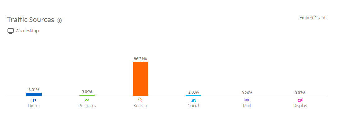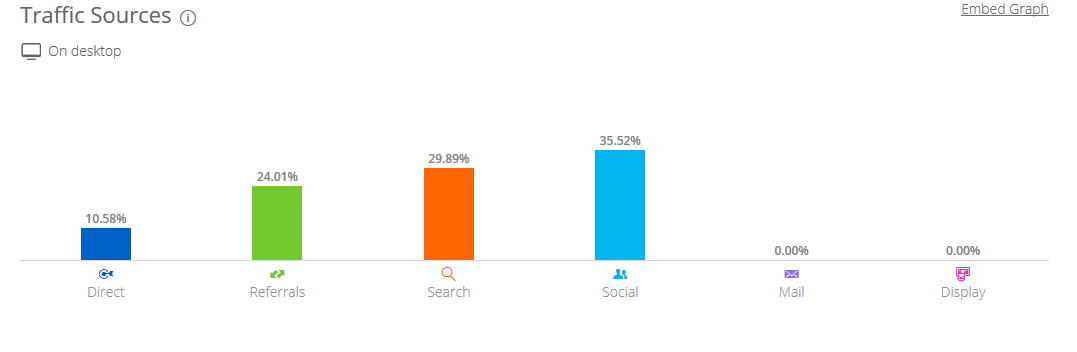 Similar webのデータをみると、バランスよくアクセスを確保していますが、Blog、Instagram、Twitter、Facebookなど、さまざまなメディアを持っていることもあり、SNSからのアクセスが35.52%と多いです。
