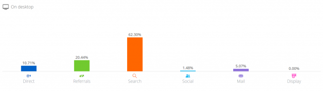 リッチメディア社の運営するオウンドメディア。「お肌の正しい知識を”医師”が解説するスキンケア情報サイト」というコンセプトで、月間のアクセス数は300万を超える人気メディアです。下図を見ての通り、85%以上の方々が検索から訪れています。