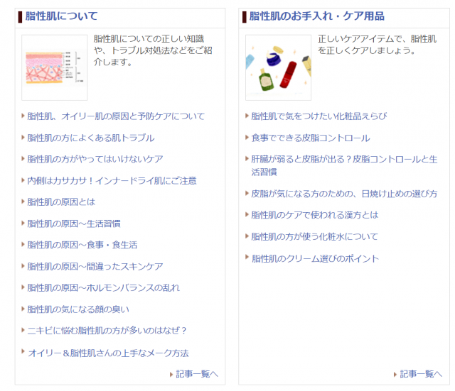 ▲「肌対策」というジャンルだけでも、数百の記事が存在します。