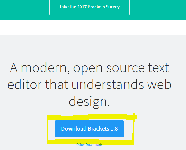 まずこちらのサイトにアクセスし、ダウンロードを開始します。「Down load Brackets 1.8」と書かれたボタンがあるのでダウンロードしましょう。バージョンはダウンロードする時期によって数字が変わる可能性があります。