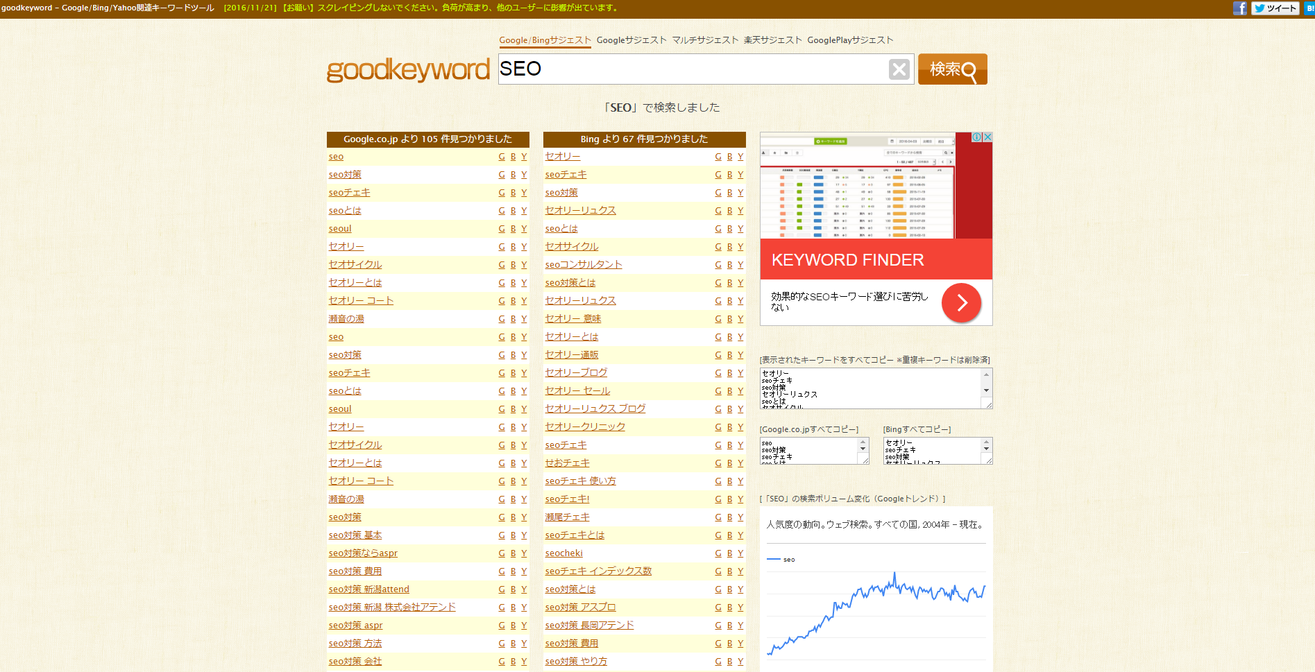goodkeywordでは、あるキーワードに関連するキーワードがわかるため、ユーザーが求めている情報を把握して、よりコンテンツの内容を充実させることができるでしょう。