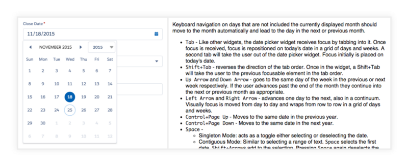 キーボードだけで、ユーザーが全てのフィールドを編集したり、操作のきっかけとなることができるようにすべきです。キーボードを良く使うユーザーはキーボードから指を離さず、タブでフィールドを移動し入力ができるようにすべきです。キーボードインタラクションについての詳細は、W3C’s Authoring Practices for Design Patternsに記載されています。