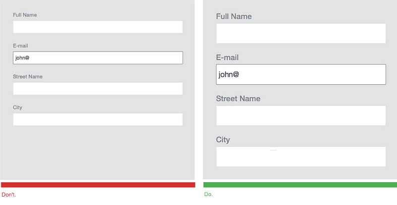 ユーザーはどんな種類のデータをフィールドに入力するべきか知りたいと考えます。明確なラベルテキストはユーザーにそれを伝えるメインの手段になります。もちろん、アイコンを頼りにフィールドの意味を理解することもあります。例えば、ユーザーが虫眼鏡アイコンを”検索”の意味だとテキストなしに理解するケースなどです。ですが、ほとんどのケースでは、わかりやすく常に目に入るラベルを入力フィールドに提供すべきです。