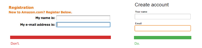 ラベルはヘルプテキストではありません。簡潔で短くわかりやすいラベル(1〜2語)を使うべきです。そうすれば、ユーザーはすぐにそれを読みとることができるでしょう。もし追加情報や説明が必要な場合は、むやみに長いラベルを使うのではなく、ヘルプテキストを使用してください。