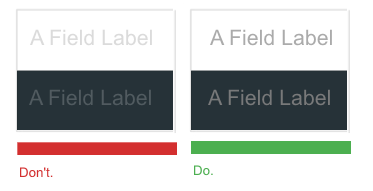 ラベルの色はアプリのカラーパレットを反映すべきです。また、明るすぎず、暗すぎない適切なコントラスト比に合わせましょう。W3Cは以下のコントラスト比を推奨しています。