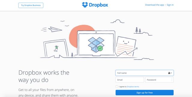 DropboxのフラットなWebサイトはコンテンツだけにフォーカスを当てています。
