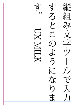 文字を縦組みに入力したいときに使うツールです。主に和文の文章を入力するときに使いますが、欧文や数字は基本的に文字が回転した状態で入力されます。