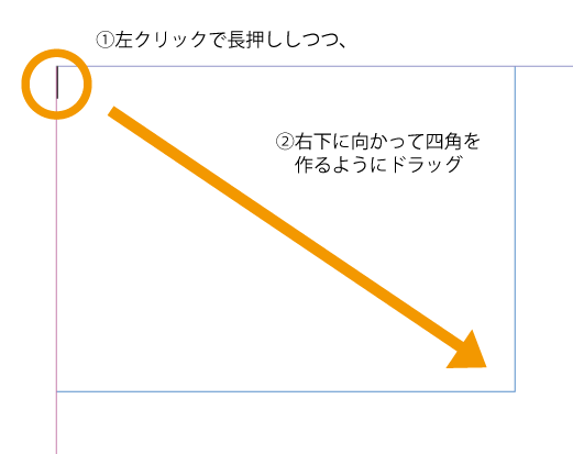 横組み文字ツールを選択したら、左クリックで長押ししながら右下に向かって四角を作るようにドラッグします。これでテキストボックスを作成できます。テキストボックスの大きさは後で調整することが可能です。
