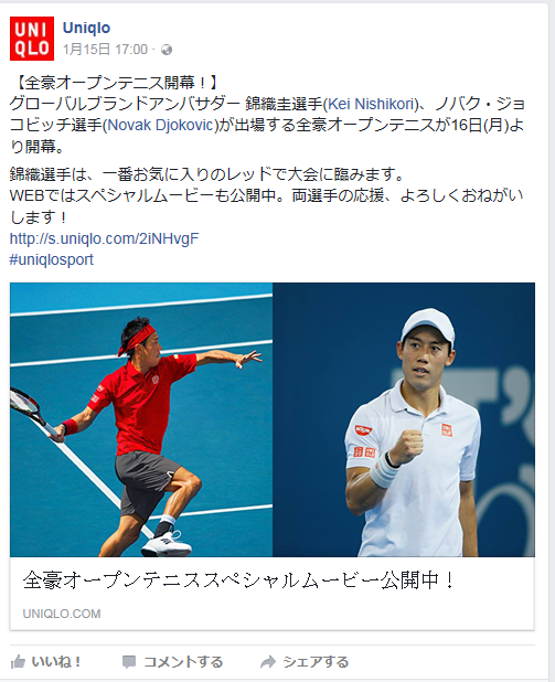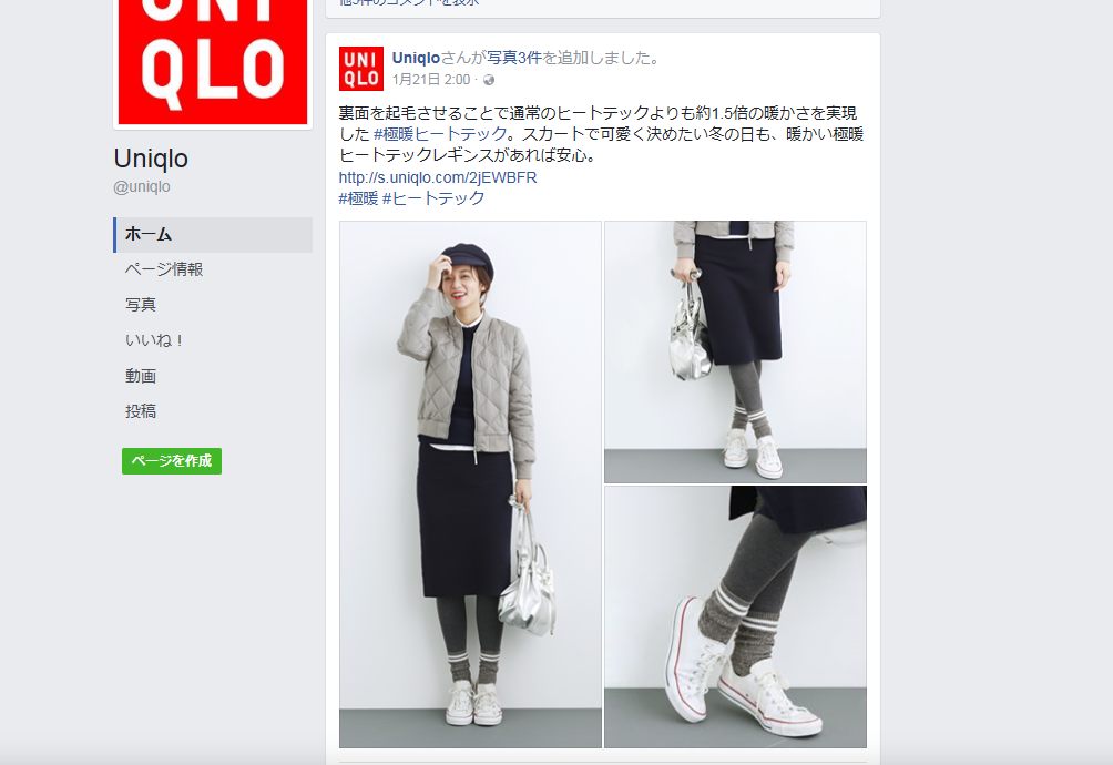 続いて紹介するのは、誰もが知る大手アパレル会社、UNIQLOの公式Facebookです。