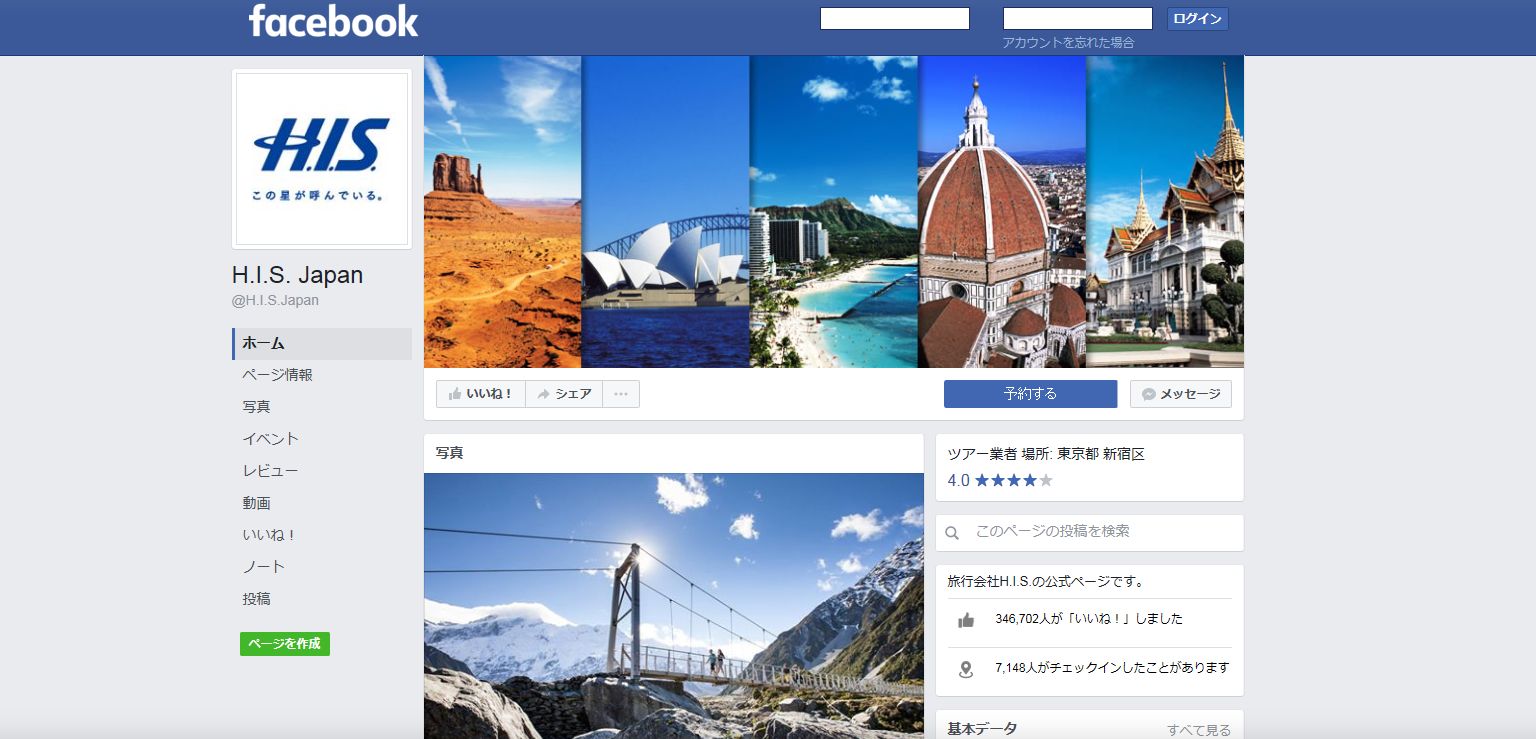 それでは具体例として事例を紹介します。まずは日本最大手の旅行会社、H.I.S Japanの公式SNSを取り上げます。