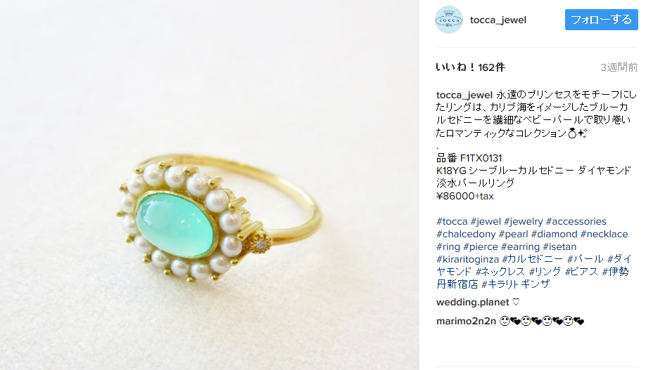 女性から支持を集めるアクセサリーブランド、Tocca Jewelの公式instagramです。