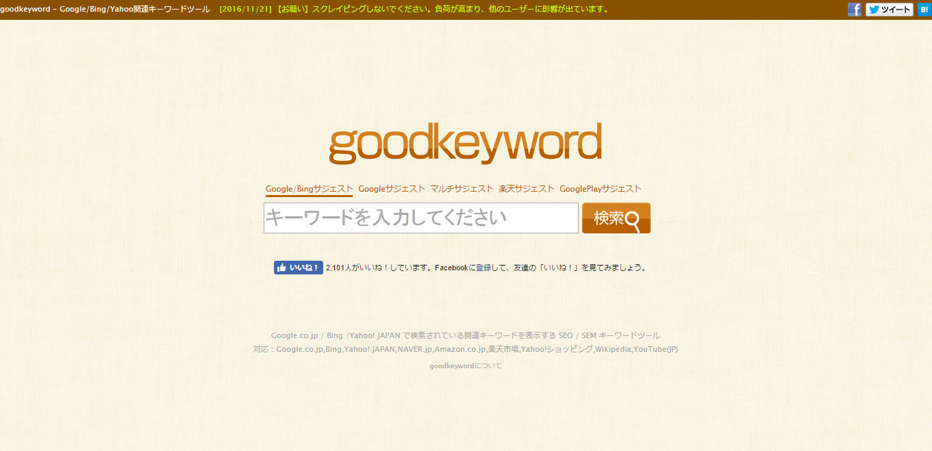 次に、リストアップしたSEOキーワードについて、ユーザーがどのような検索をしているかを知るためにはgoodkeywordがおすすめです。