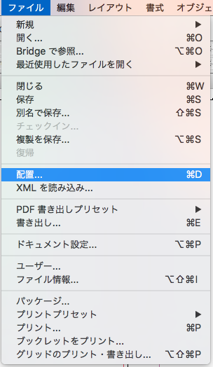 メニューバーから、ファイル>配置を選択します。