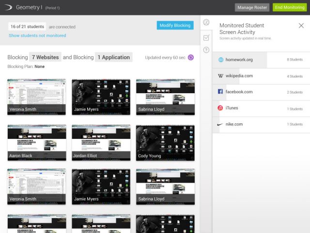 Dyknowは、この問題を解決するプロダクトです。モニタリング用のプロダクトで、教室内でインターネットを使った学習が行われているとき、生徒が何を見ているのかを正確に把握することができます。