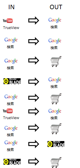 CVまでのプロセスの中で、「直前」と「直後」のメディアのパスを切り出して2点間の推移確率を出します。