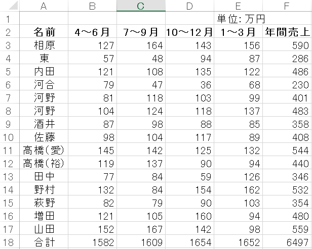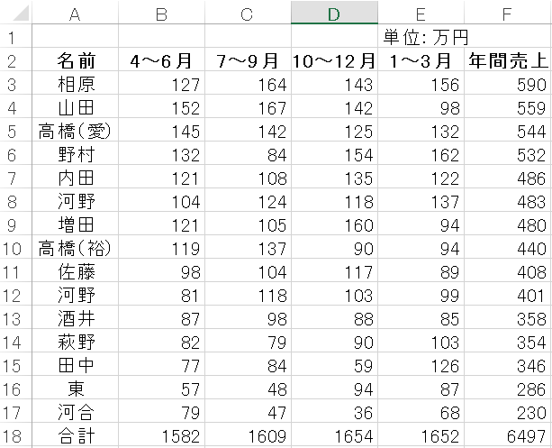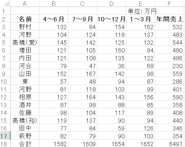 こちらのデータを、いろいろな順番に並び替えていきます。