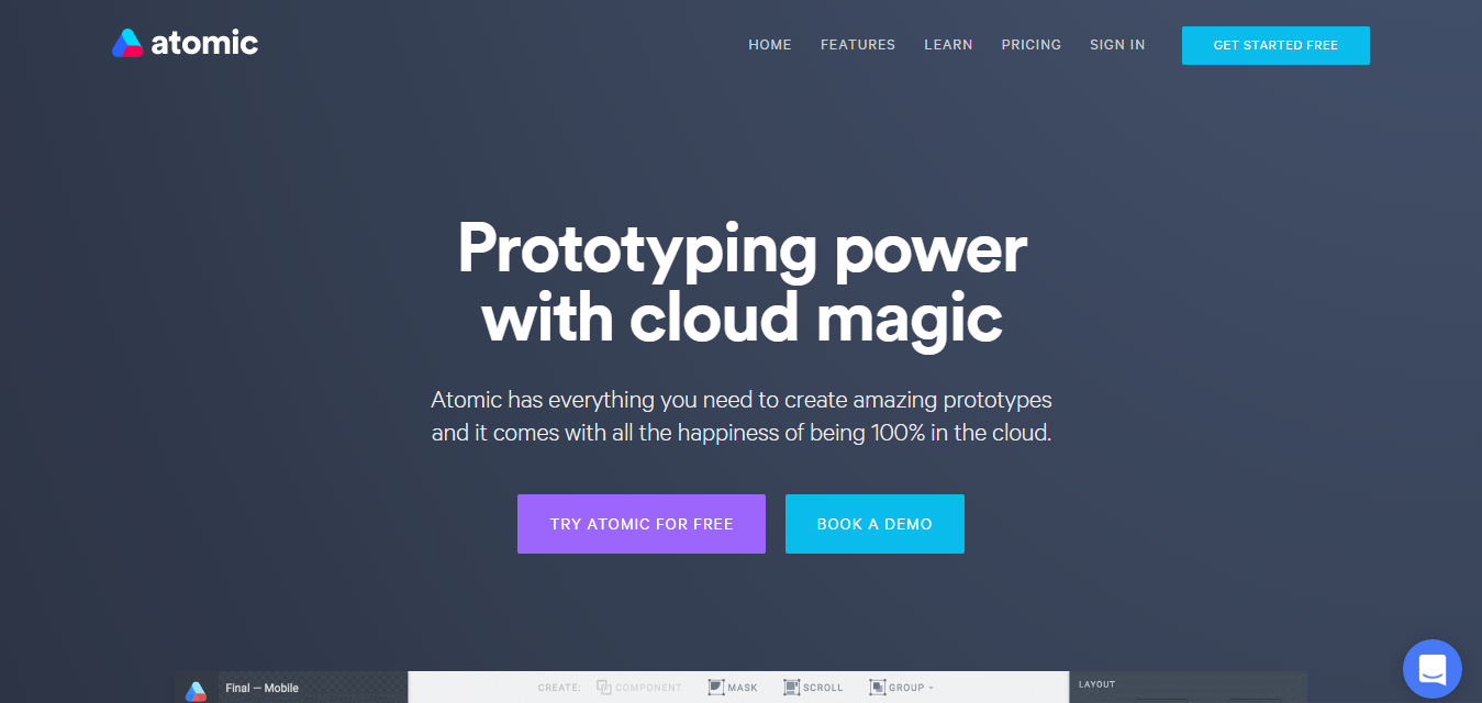 Atomicは、2015年にリリースされたプロトタイピングツールです。基本的な機能はAdobe XDと似ていますが、アニメーションの演出(イージング)の設定をよりこだわることができ、よりこだわりたいユーザーのために個別の要素をFlashアニメーションのようなタイムラインで設定することもできます。