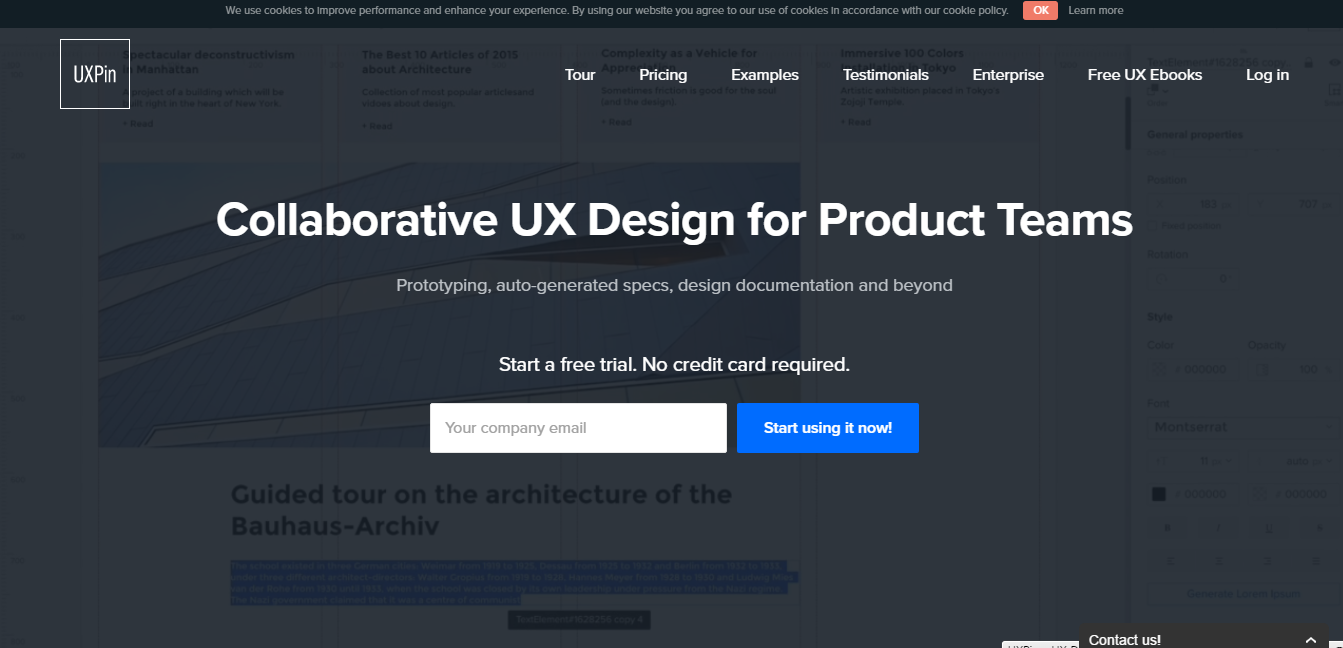 UXPinは、2010年にリリースされたプロトタイピングツールです。「Experiment with 1000s of built-in elements」とブランドサイトにあるように、豊富なUIデザインのプリセットを揃えています。