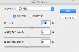 ワープテキストパネルが開いたら、スタイルの項目から好きなスタイルを選択します。カーブのかかり具合を調整したらOKを押してください。