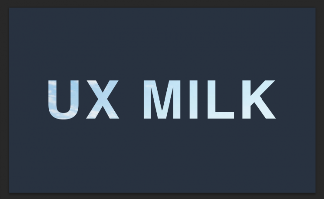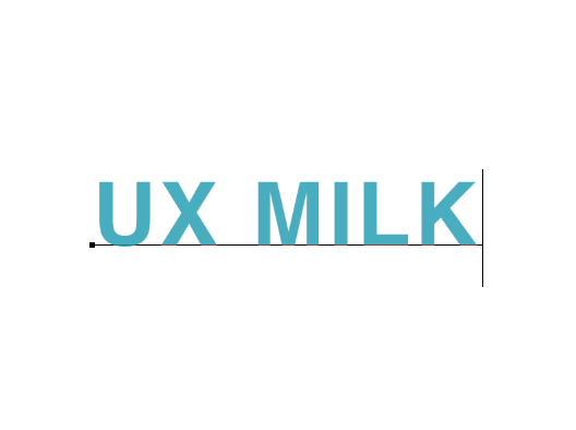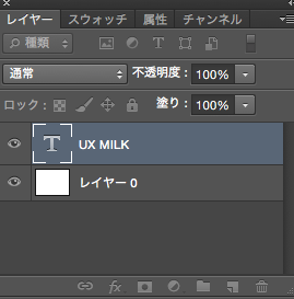文字ツールアイコンを選択した状態でクリックすると、クリックした箇所を始点に文字の入力ができます。上の画像では文字ツールを使って、UX MILKと入力してみました。