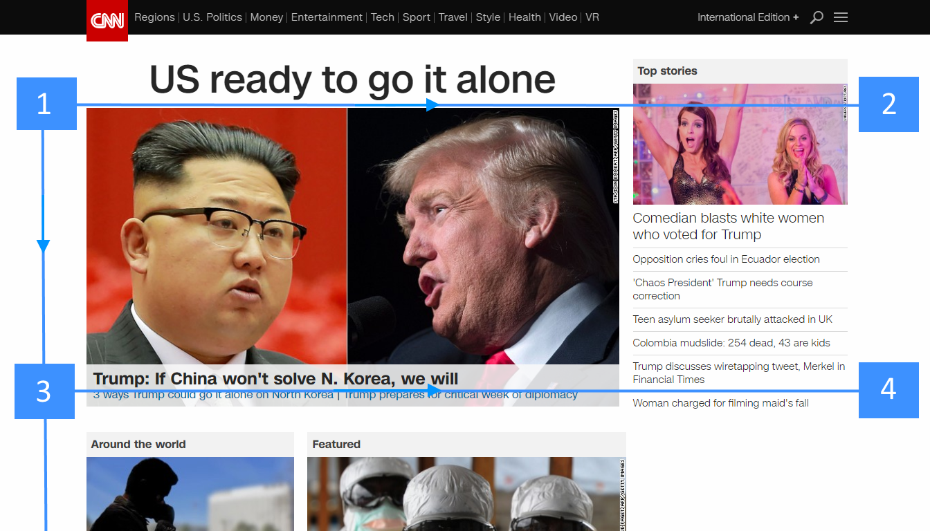 もちろんユーザーの視線の動きは、毎回正確に3つの部分で構成されているわけではありません。ユーザーは興味のあるものが見つかれば、水平な視線の動きで通常の読書を開始します。