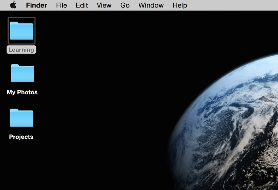 Macのデスクトップ上の「Learning」フォルダをクリックすると、ハイライトされます。