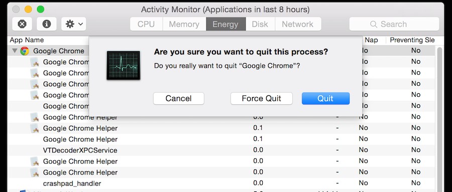 ユーザーがプログラムを続行するか終了するかを選択できるようにします。 Macのアクティビティモニターでは、プログラムが予期せずクラッシュした場合に強制終了することができます。