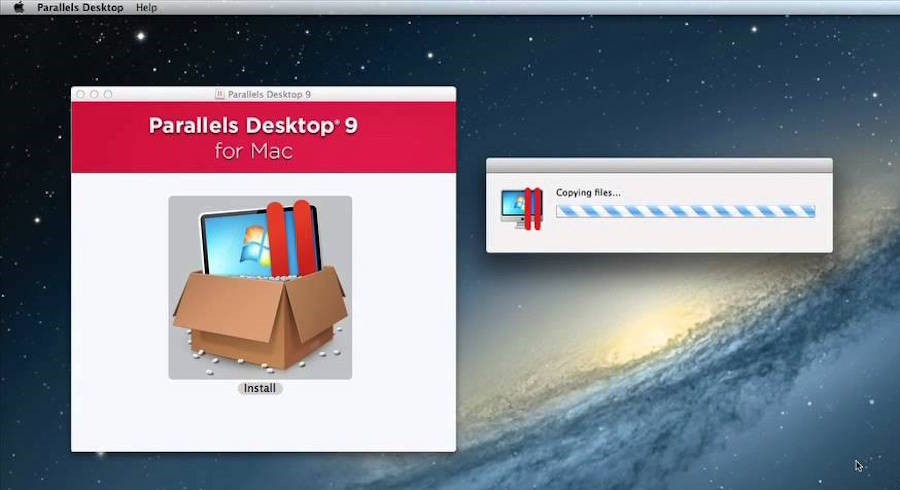 ユーザーがプログラム「Parallels Desktop 9」をインストールすると、現在「ファイルをコピー中」と表示されます。