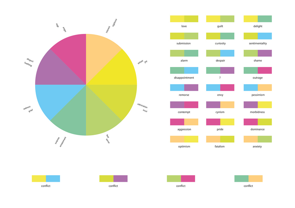 Plutchik氏の感情の輪によると以下の感情の組み合わせがあります: