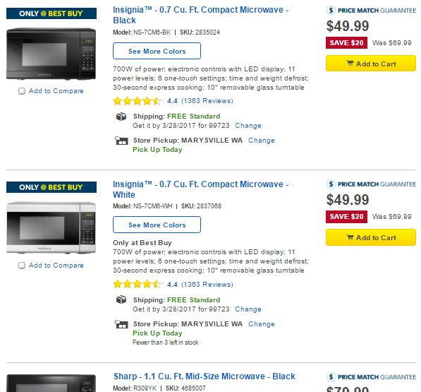 このルールを、製品のサイトページを例に見ていきましょう。ユーザーが製品を選ぶときに必要な情報の要素によって、リストビューとグリッドビューどちらかのレイアウトを用いるようにしています。家電の場合、モデルナンバーや評価、寸法などの情報をユーザーが必要とするので、リストビューのほうが適しているのです。