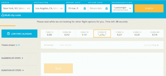 検索結果が即座に表示されるのが理想的ですが、不可能な場合は、ユーザーのシステムフィードバックとして検索の進行状況を表示します。ユーザーがあとどのくらい待たなくてはならないのかをわかりやすく知らせましょう。