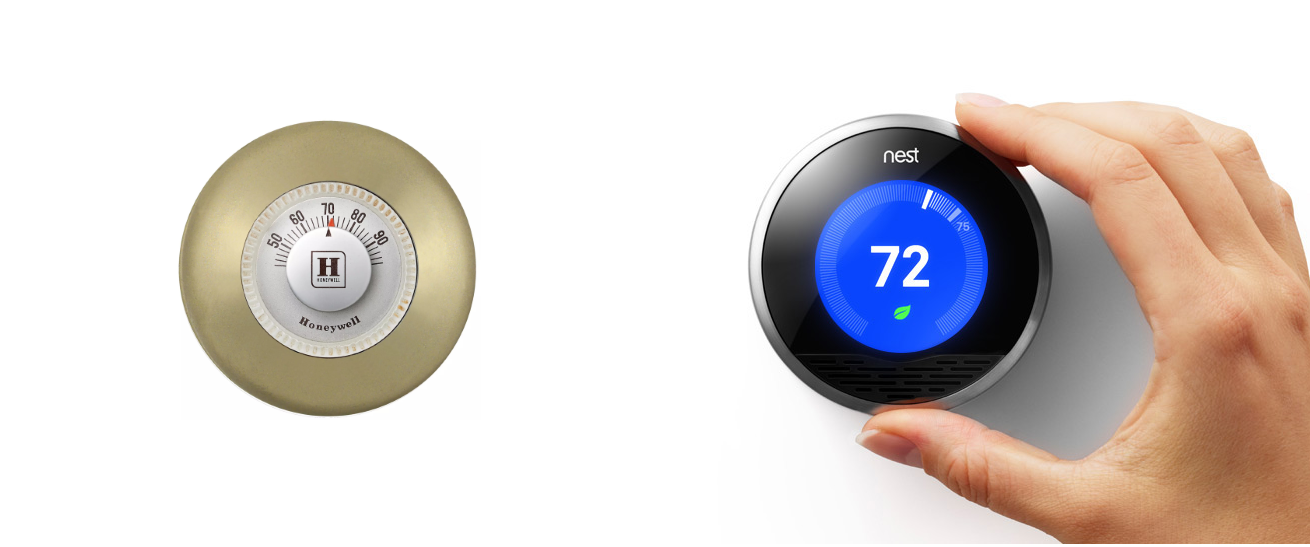 良い例の1つが、Nestでのサーモスタットのデザインに使われているアナロジーです。もともと、このデザインはHoneywellのサーモスタットを参考にしていて、円形状のタブを回すことで温度を調節できるようになっています。Nestはこの機能を実際に表現するにあたり、ほかの方法を選ぶこともできたでしょうが、Honeywellのサーモスタットを選びました。これによってNestのサーモスタットにどことなく親近感を与えることに成功しました。