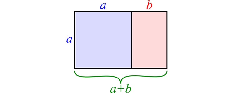 Wikipediaによれば、2つの数の比率が、大きい方の数と2つの数字の合計の比率と同じ(編注:a>bのときa:b=a+b:a)であれば、黄金比が成立します。