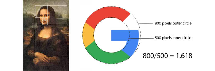 答えは、モナリザもGoogleのロゴも、「神授比例法(神意によって授けられた秘法)」として知られる黄金比を採用していることです。数学者は黄金比を約1.618としています。