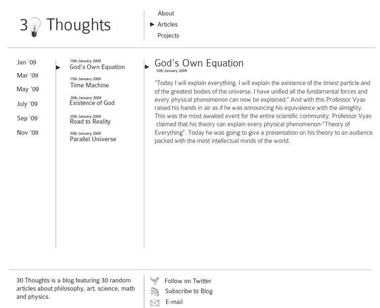 このブログはシンプルですが、綺麗にデザインされています。 内容は上手に配置されていて、フォントサイズも読みやすくバランスがとれており、レイアウト自体が鮮明で美しく見えます。フィボナッチデザインの優れた例です。