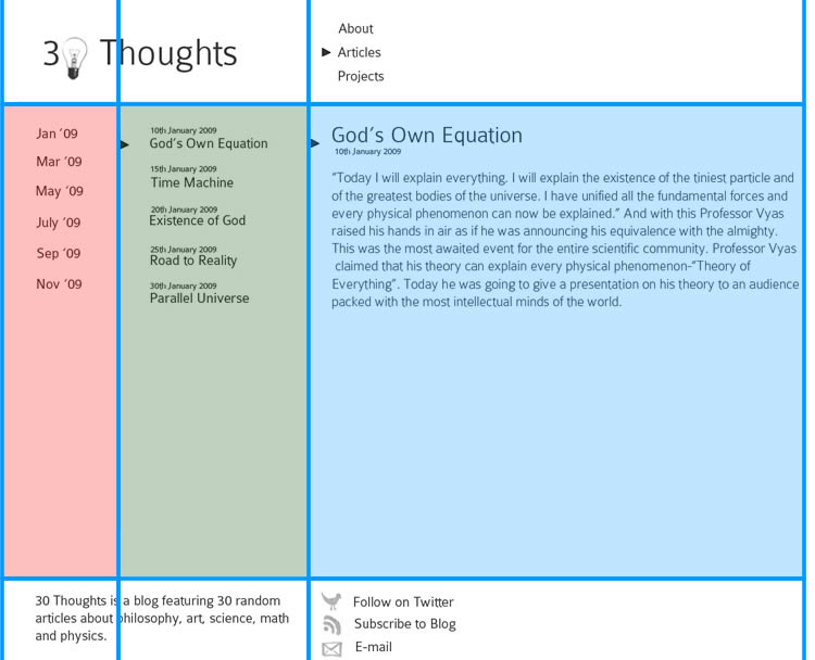 黄金比やフィボナッチ数列とは異なり、3分の1の法則は、デザイン業界の外でもよく知られている原則です。UXデザイナーが今更この法則を学ぶ必要はありませんが、Webデザインにおける数学の役割を書く上で、3分の1の法則に言及しないわけにはいきません。