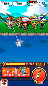 たとえばこれはゲーム内のイベントで釣りをするミニゲームなんですけど、これも、カメラアングルが特徴的なんですよね。チームのみんなが映る視点にしています。