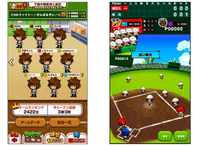 「ぼくポケ」は、チームを組んで甲子園での優勝を目指すという、いわゆるギルドバトル形式のゲームです。スポーツゲームとしてはかなりユニークで、自分1人でチームは組めなくて、あくまで1人の選手としてプレイするという仕組みになっています。