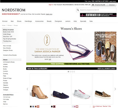 おそらく、2番目のNordstromのWebサイトの写真のほうが、製品や会社、メリットが理解しやすかったでしょう。スクリーンの写真を見る前からブランドを知っていなくても、Nordstromのページから3つの要素を見つけ出すことは簡単だと思います。1番目の写真も女性の靴を売るECサイトのものですが、Nordstromのページほどわかりやすくなかったのではないでしょうか。
