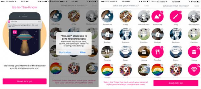 Trip.comはどのようにしてこれらのおすすめを提供しているのでしょうか? 答えは、最初のユーザーの入力を通してです。ある程度のユーザーのインプットが必要になるアプリにとって、ユーザーにオンボーディングのプロセスを完了してもらうことは課題になることがあります。しかし、Trip.comは果敢にこの課題に立ち向かっています。