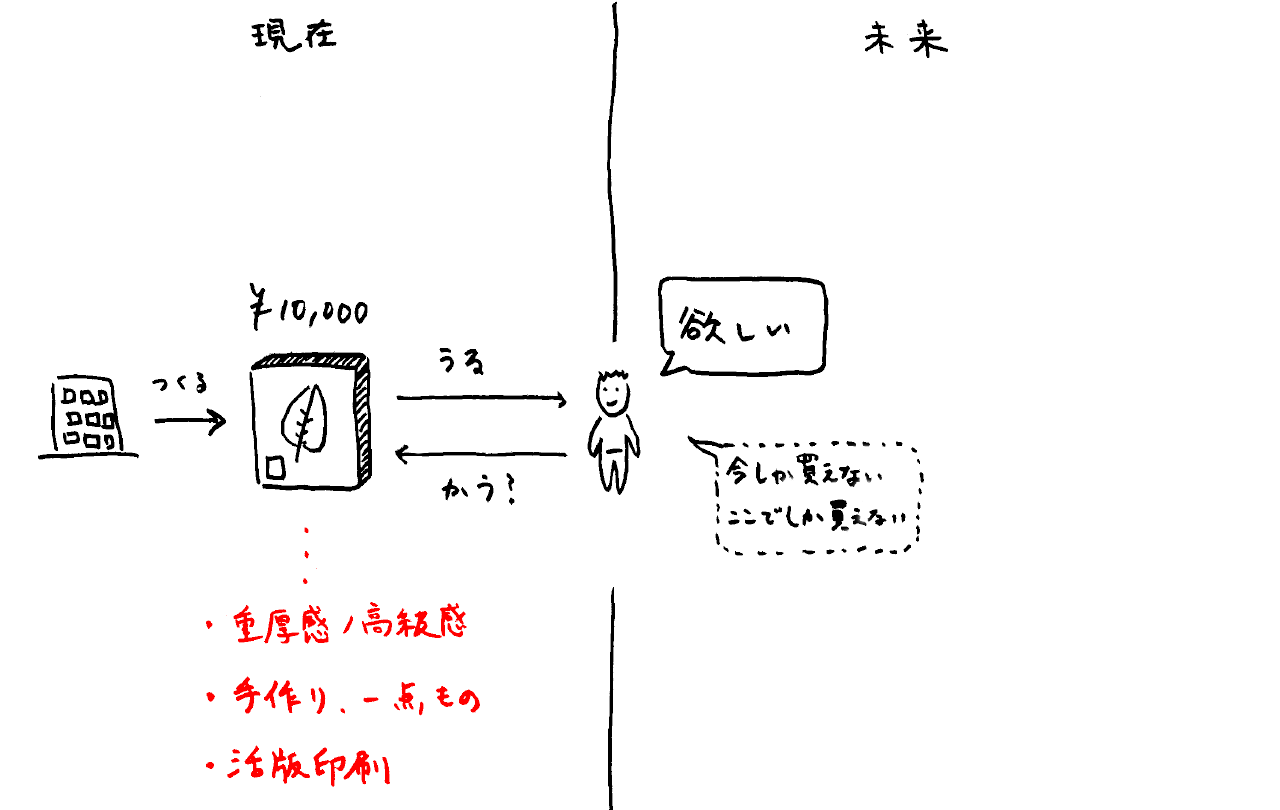 この商品は一個一個ハンドメイドで、緻密な作成工程を経て作られるものなのですが、パッと見のユーザーには価値が伝わりにくい商品です。これを10,000円でユーザーに違和感なく買ってもらうにはどうしたら良いでしょうか?