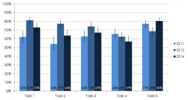 図2は、ある自動車のWebサイトで2011年、2012年、2014年の3年間に渡って行われた同一のタスクを表しています。